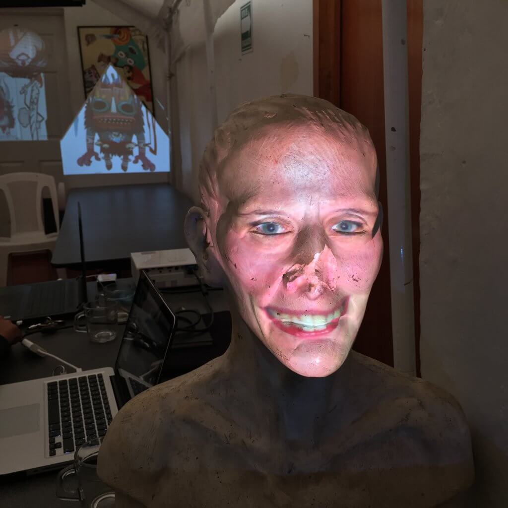 Projección sobre rostro en tiempo real. Ejercicios de videomapping ejecutados por estudiantes del curso.