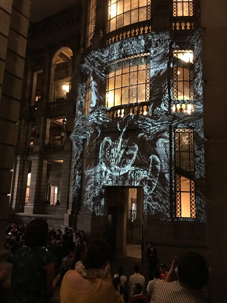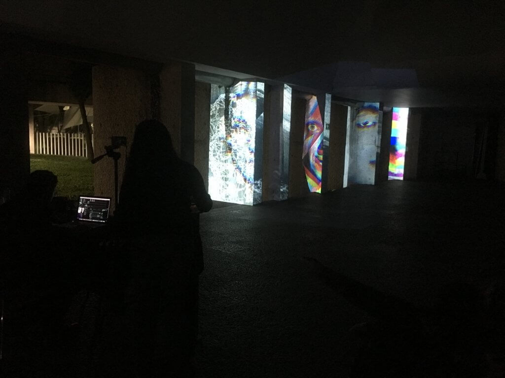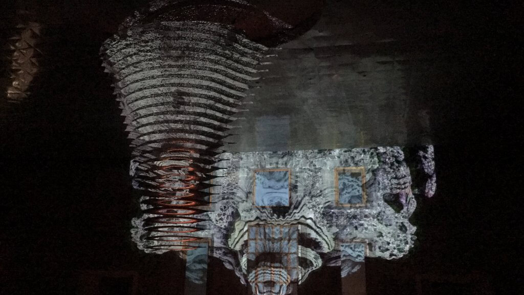 Museo Nacional de Arte, MUNAL, Patio de los Leones. Gráficos generativos reactivos al sonido con proyección mapeada.