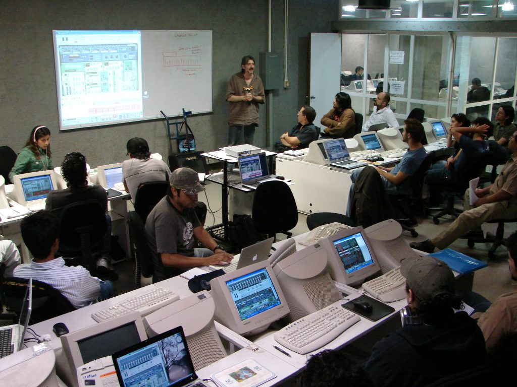 2007. Facultad de Ciencias, Universidad Nacional Autónoma de México, UNAM. Héctor Barbone impartiendo el curso de Arte y Tecnología Musical.
